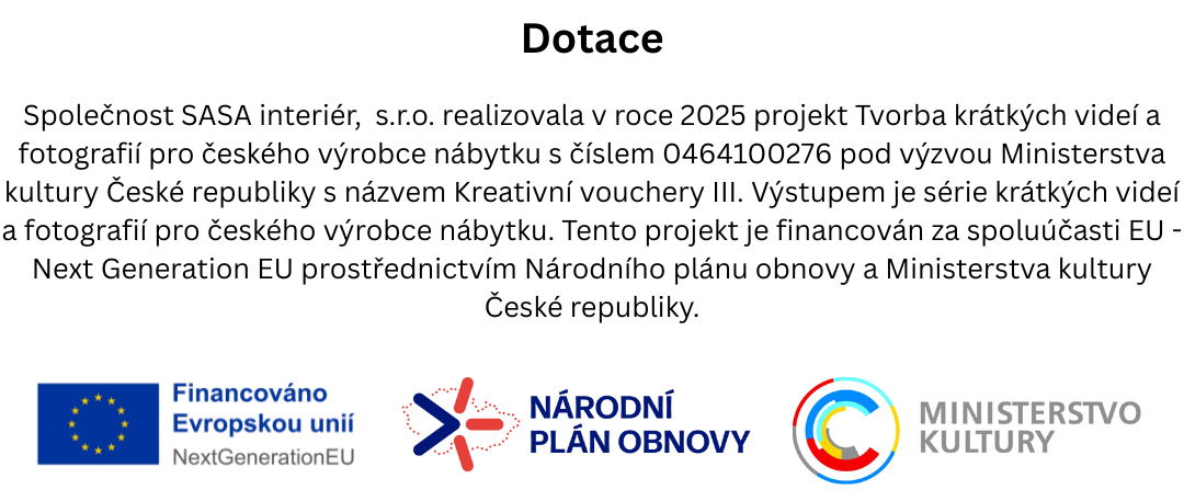 Firma SASA interiér vznikla v roce 2006. Zabýváme se zakázkovou výrobou pro bytové interiéry a komerční prostory.